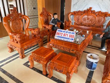 Bàn ghế Nghê Phượng Tay 12 Gỗ Hương đá – A Thái – Nam Định