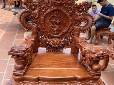 Ghế đơn bộ rồng đỉnh được chạm khắc tinh xảo cả 2 mặt theo tiêu chuẩn cao nhất của hàng xuất khẩu.