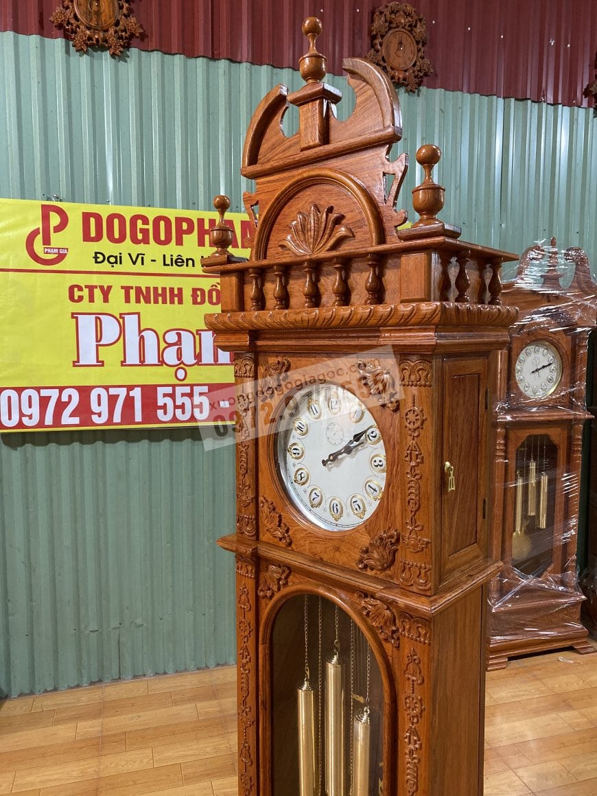 Đồ gỗ Phạm Gia trân trọng giới thiệu đến quý vị đang tham khảo mẫu đồng hồ cây được làm từ gỗ hương đá cao 2m phù hợp kê trong không gian phòng khách hiện đại.