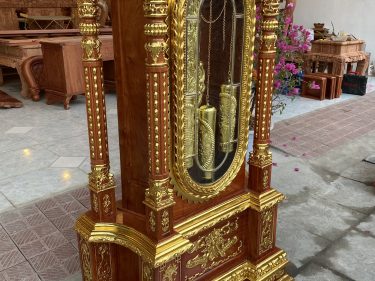 .Ảnh chi tiết đồng hồ cây gỗ hương dát vàng cực kỳ sang trọng
