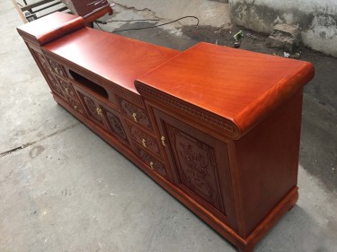 Mẫu kệ tivi lõm chạm đồng tiền gỗ xoan đào: