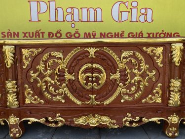 Mẫu kệ tivi hoàng gia độc lạ nhất thị trường do công ty đồ gỗ phạm gia sản xuất theo yêu cầu của khách hàng khác với những mẫu kệ thông thường dài 2,4m cao 67cm thì chiếc kệ tivi đặc biệt này dài 3m cao 81cm
