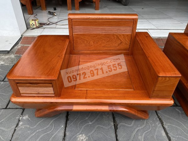 được làm từ gỗ hương đá tự nhiên, mang đến sự sang trọng cho không phòng khách của gia chủ, mẫu sofa hiện đại Thiết kế trơn để phô diễn vẻ đẹp của vân gỗ tự nhiên cùng những đường chỉ trên mặt gỗ, bộ sofa phù hợp với giới trẻ.